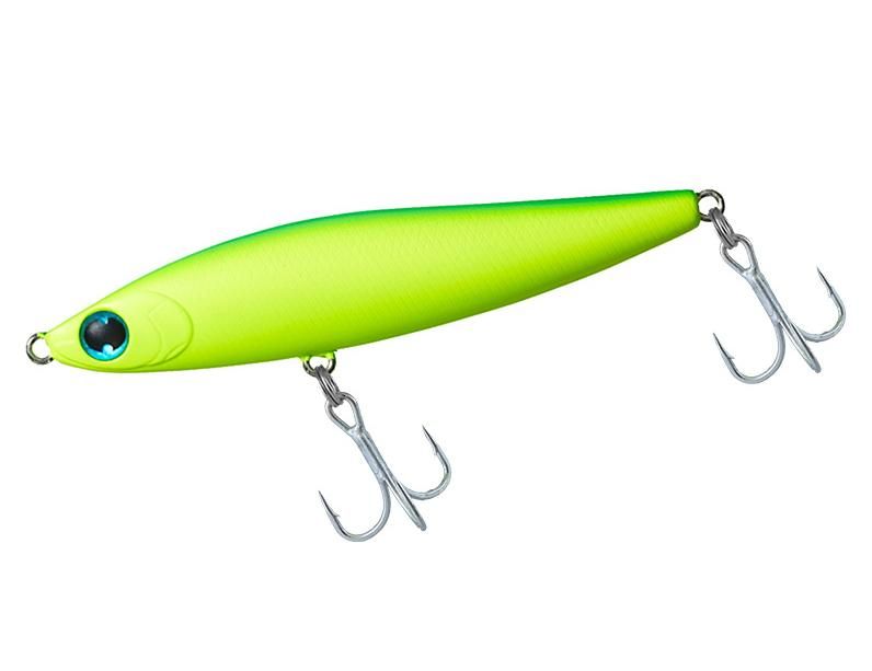 河川やサーフ・磯・干潟などのシャローエリアや水面直下を簡単に攻略できるデイ&ナイト対応シンキング&スイミングペンシル。ジグ並みに飛距離が出るので、ミノーでは届かない遠くのボイルも射程範囲に収める。コノシロ・落ち鮎・イワシ・イナッコ・ハタハタ等様々なパターンに対応。アクションは流れに敏感かつ不規則なスラロームアクション。