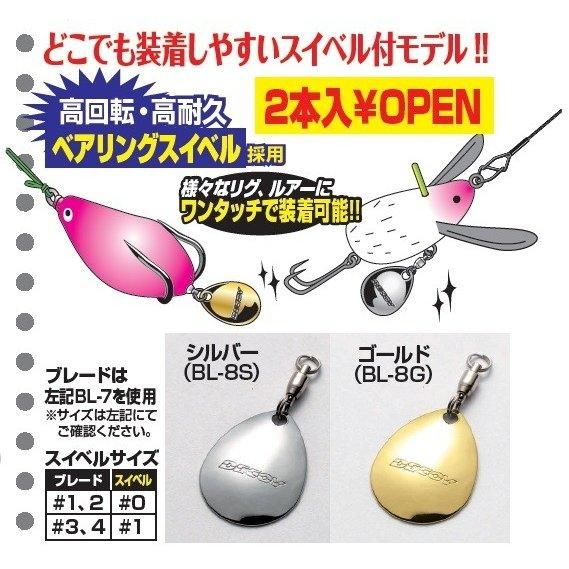 BL-7コロラドタイプのブレードに、高回転ベアリングスイベルを装着したモデル。フロッグやプラグのブレードチューンはもちろん、様々なリグやワイヤーベイトへのチューンが容易になります。