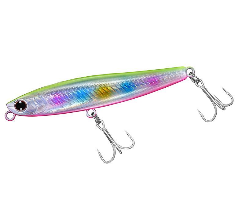 向かい風や横風、爆風時、ここ一番の遠投のために開発したヘビーシンキングペンシル。「飛距離第一主義」をコンセプトとし、ジグ級に飛ぶので、ミノーでは届かない遠くのボイルや潮目も射程範囲内。浮き上がりも早く、大河川、サーフ、干潟、磯、河口等の水面直下やシャローエリアを昼夜問わず攻略する。
