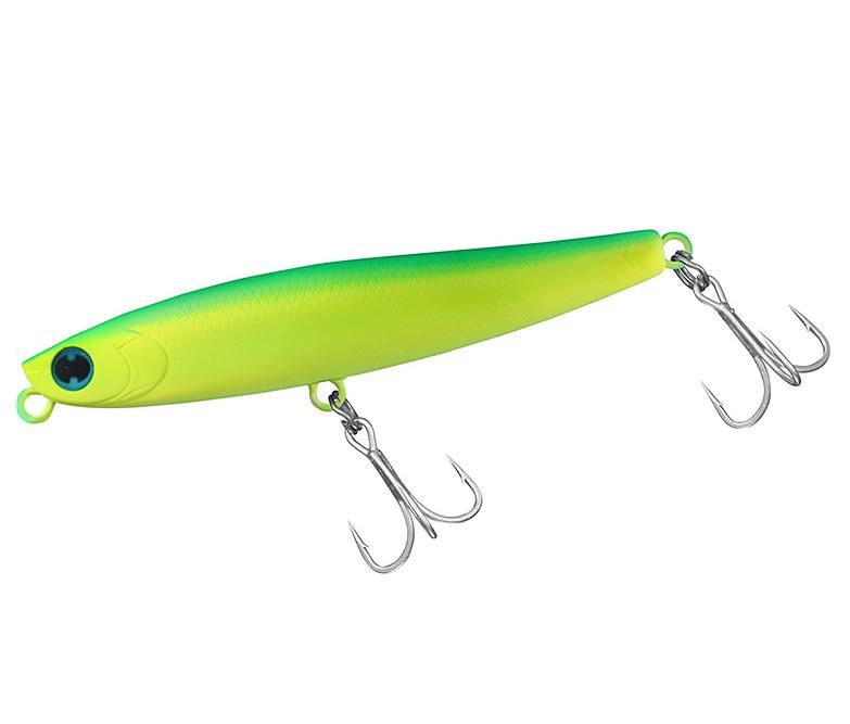 向かい風や横風、爆風時、ここ一番の遠投のために開発したヘビーシンキングペンシル。「飛距離第一主義」をコンセプトとし、ジグ級に飛ぶので、ミノーでは届かない遠くのボイルや潮目も射程範囲内。浮き上がりも早く、大河川、サーフ、干潟、磯、河口等の水面直下やシャローエリアを昼夜問わず攻略する。