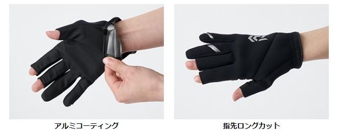 甲側に保温性のあるアルミコーティングのクロロプレンを採用。 縫い目のない一枚生地を使用しておりフィット感抜群。 指先は通常の3本カットより長めに残すことで、指先の露出を抑える。