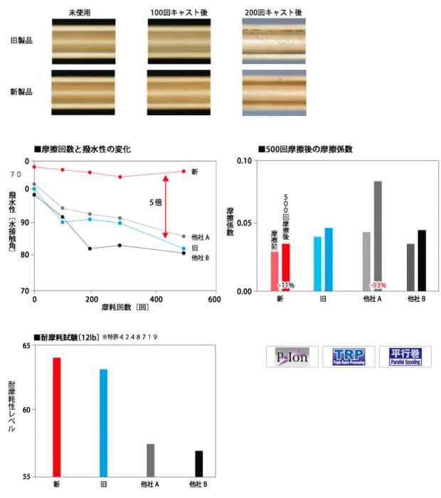 ■ 1日何百〜何千回のキャストは激しくライン表面へのダメージを与えます。サンラインが誇る最新テクノロジー技術プラズマ処理を施した「P−Ion」加工をすることで表面を改質し強靱な表面を持ちフロロと思わすほどの耐久性アップを感じさせます。さらにガイドから出るラインの放出感はまるで無抵抗に感じるほどアップ。スムーズに出て行くラインはわずかなブレも無くなりピンポイントに狙い撃つことができます。