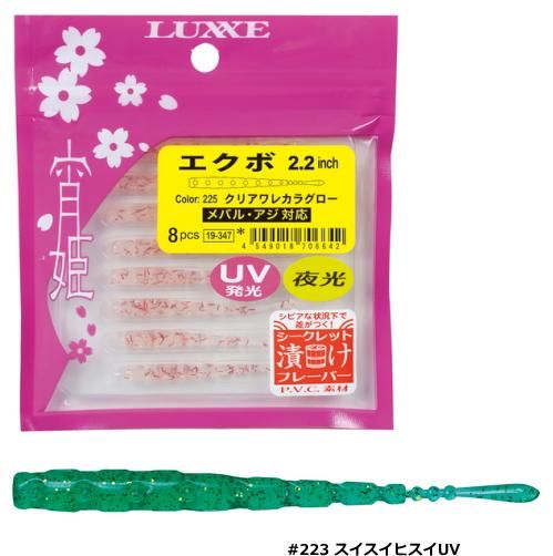 がまかつ LUXXE (ラグゼ) 宵姫 エクボ 2.2インチ #223 スイスイヒスイUV / ワーム ルアー (メール便可) 【本店特別価格】