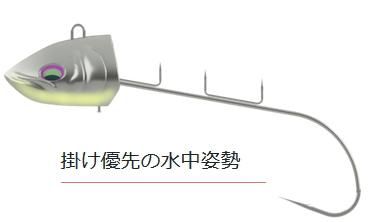 軽いアクションでボディに動きを与える水切ボディ形状。傾斜角約10度に設定したショートシャンク&ワイドゲイブフックによりタチウオを効率的に”掛ける”ことができます。