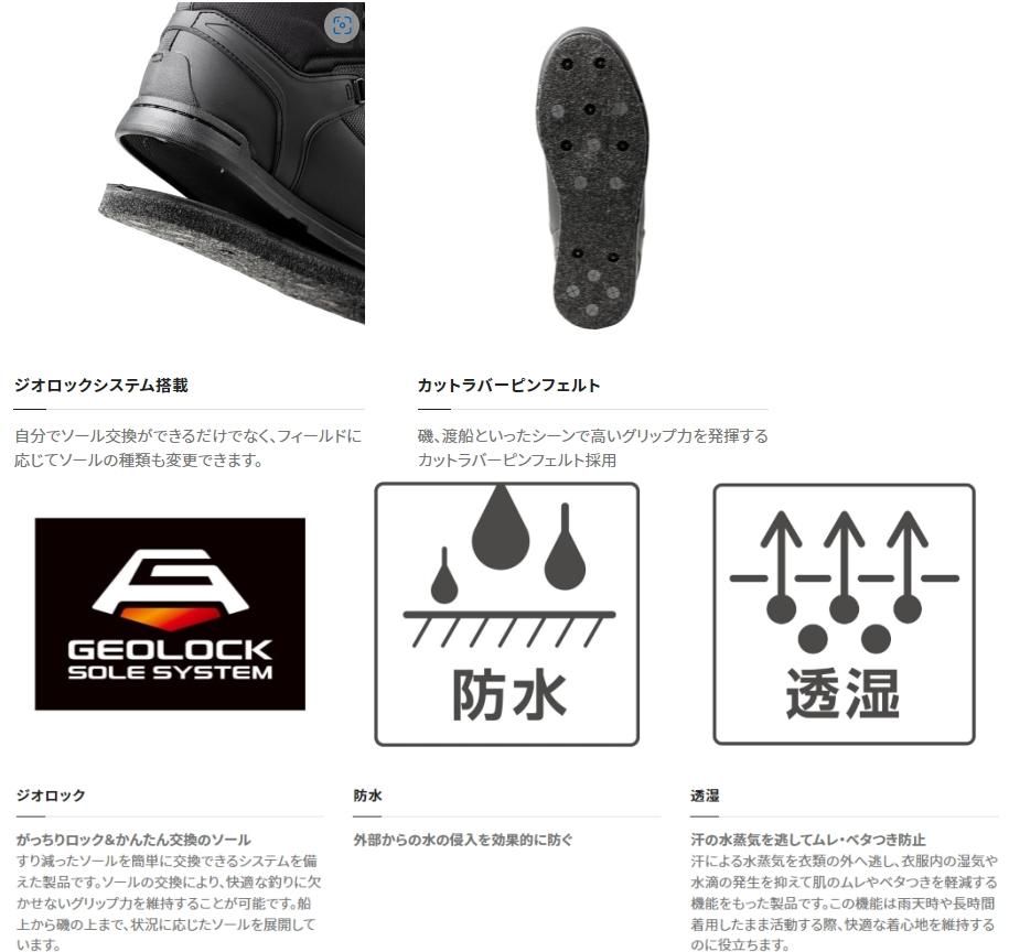 ・ジオロックを搭載した5cm防水の透湿防水ロックショアシューズ