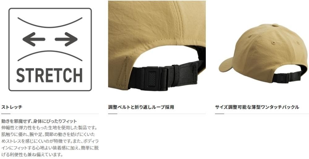 デザイン性に優れた浅めの形状のローキャップ。ストレッチ素材とストレッチビン革を採用することで、簡単に脱げにくく、また頭を締め付けすぎない快適なフィット感を実現しています。