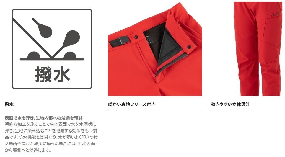 ・表面に耐摩耗生地で、裏地にフリースを配した、耐久性・保温性の高いパンツです。