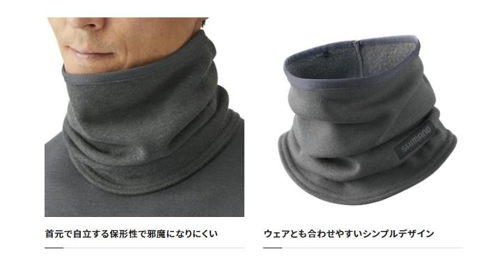 高い保温性に加え、シンプルなデザインでウェアとも合わせやすいネックウォーマー。首元で自立するため、実釣時にも邪魔になりにくいのが特徴です。
