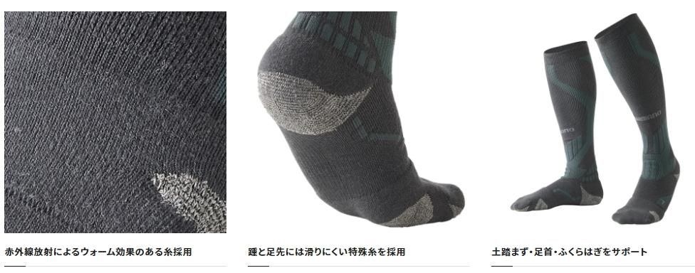 履きやすさを向上させ、赤外線放射する糸を採用した冬用サポートソックス