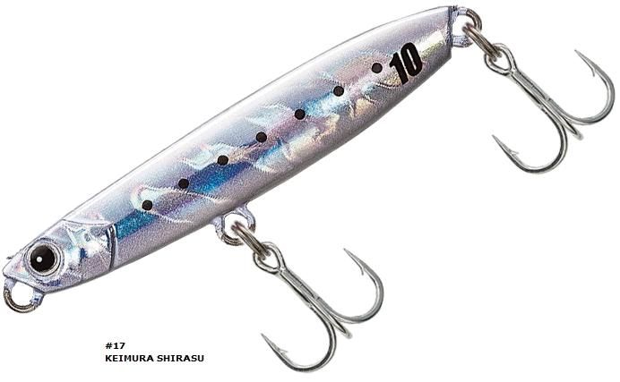 遠投性能に優れたリア重視フォルムに安定したスイム姿勢からウォブレイングアクションを演出。巻くだけで魚に猛烈にアピールする簡単マイクロジグです。確実フッキングのダブルフック仕様。スーパーライトショアジギングにも最適です。
