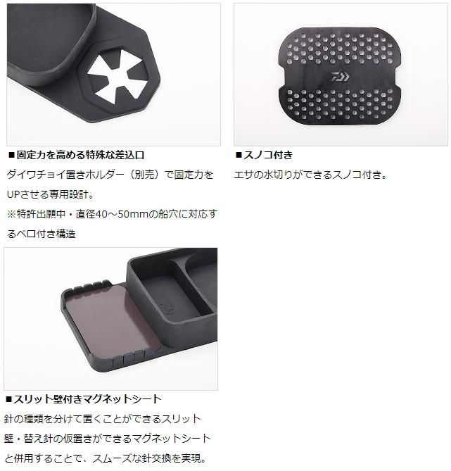 1.ダイワチョイ置きホルダー(別売)で固定力をUPさせる専用設計。