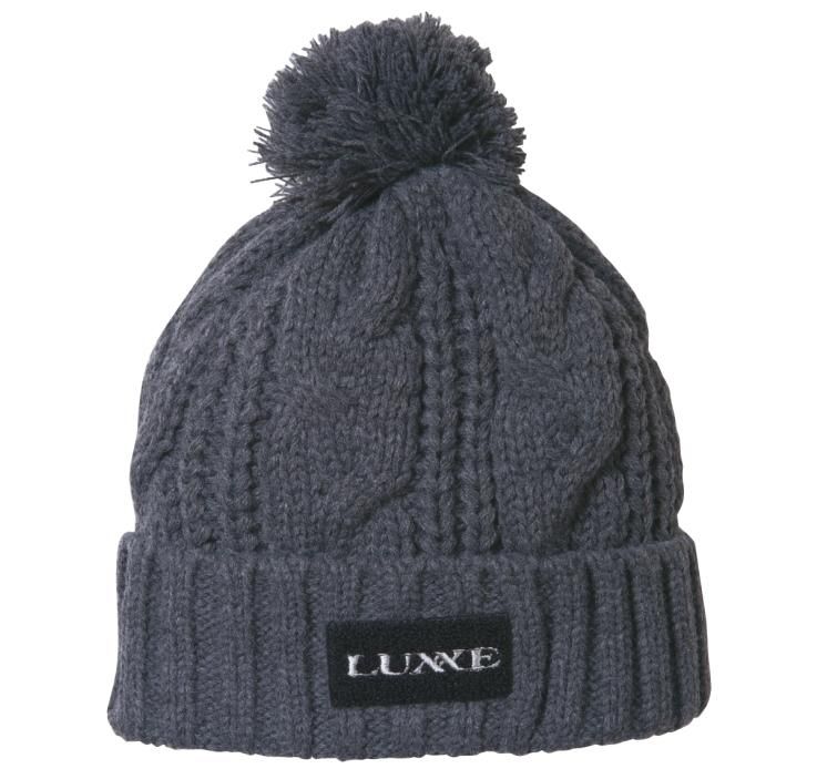 ・ローゲージのケーブル編みにポンポンをあしらった温かみのあるニットキャップ。