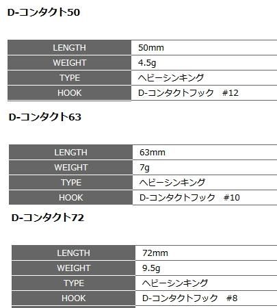 その”D”とは、比重18のタングステンウェイトを内蔵し、50mmは4.5g、63mmは7g、72mmは9.5gものウェイトを確保しつつも極薄のボディーフォルムが繰り出す、驚異の「ディスタンス力」・「ディープ力」・「ディレクション力」を意味します。