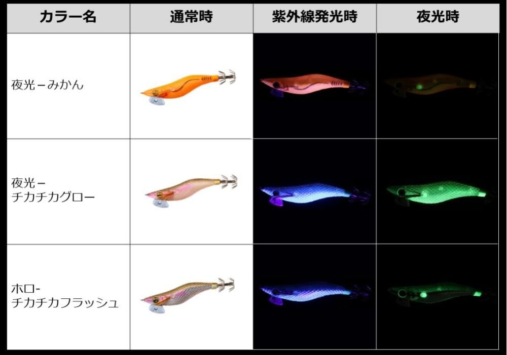 基本的に夜の釣りとなるためカラーは夜光中心にラインナップとしました。