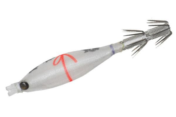 ロッドアクションでイカを誘い、「ピタッ」と止めた瞬間に抱く。ティップランの説明のようだがイカメタルゲームにおいても同じ事が言えます。では水中で「ピタッ」と止まる為に必要な事とは?それが「比重」です。中空タイプや発泡素材のスッテに比べ水に近い比重の特殊素材を使用。ソフトな素材はイカの好む抱き心地という副産物も生み出しております。止まりの速い1段針。大型サイズでも安心な2段針。全ては「釣果」の為に・・・・。