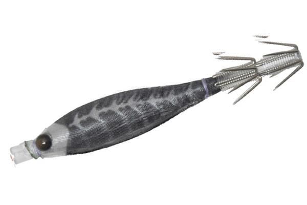 ロッドアクションでイカを誘い、「ピタッ」と止めた瞬間に抱く。ティップランの説明のようだがイカメタルゲームにおいても同じ事が言えます。では水中で「ピタッ」と止まる為に必要な事とは?それが「比重」です。中空タイプや発泡素材のスッテに比べ水に近い比重の特殊素材を使用。ソフトな素材はイカの好む抱き心地という副産物も生み出しております。止まりの速い1段針。大型サイズでも安心な2段針。全ては「釣果」の為に・・・・。