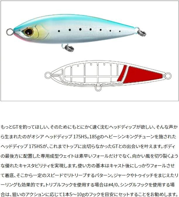 商品情報 シマノ SHIMANO オシア ヘッドディップ 175HS XU-S17V / オフショアソルトルアー ルアー