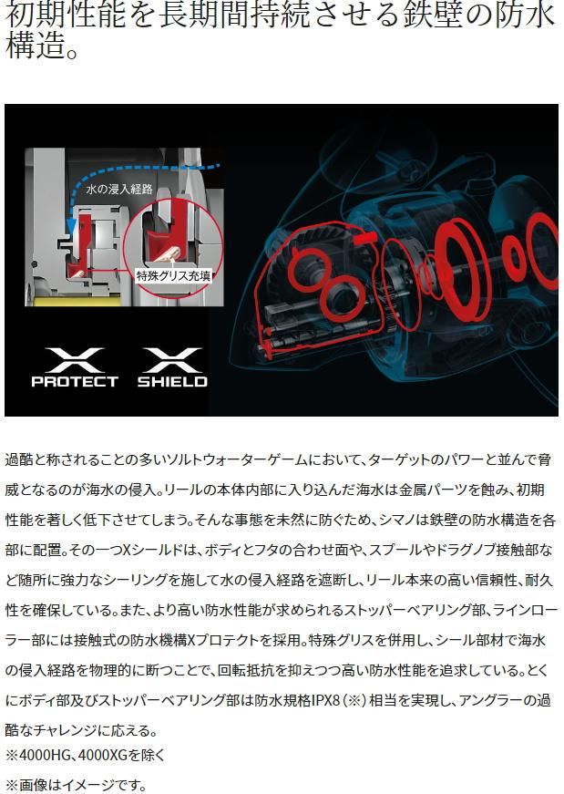 インフィニティドライブ搭載による軽やかかつ力強い巻き上げに加え、IPX8相当(※)の防水性能を誇る防水構造Xプロテクト、Xシールドがボディやラインローラー部への水の侵入をシャットアウト。上位機種と遜色のないパワーとタフネスを装備してソルトシーンを攻め抜いてきたストラディックSWに、さらなる新たな番手が加わった。新登場の14000XGは、高まりを見せるオフショアキャスティングシーンに向けてシマノが放つ超実戦的モデル。シリーズ最大のラインキャパシティ、巻き取り速度をさらに高めたエキストラハイギアなど、すべてはアグレッシブなキャスティングゲームを念頭に開発。新機種の登場でいっそう充実したストラディックSWがSWゲームにさらなる旋風を巻き起こす。