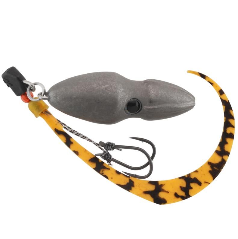 整流効果を発揮する流線形ボディをぶら下がり式にセッティング。水の抵抗を抑えることによって、二枚潮にも負けない速いフォール、そしてファストリトリーブでもバランスを崩さない安定したアクションを可能にしました。
