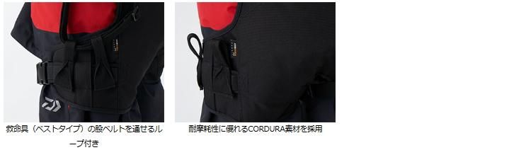 ・救命具(ベストタイプ)の股ベルトを通せるループ付き。