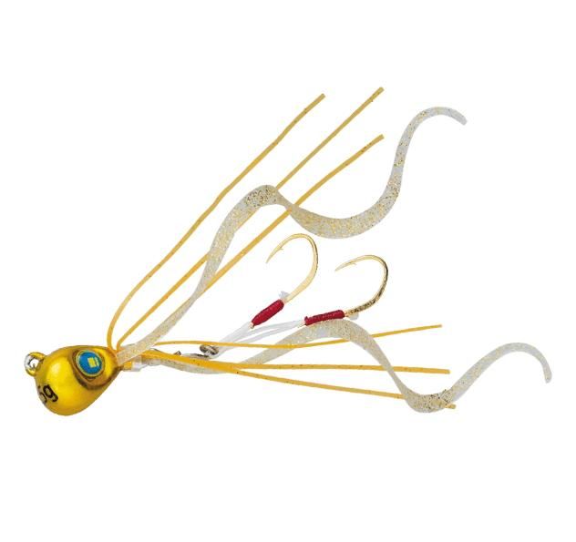 水キレの良いヘッド形状なので安定した水中姿勢とカーリー形状のネクタイの動きと波動で魚たちを誘惑します。低重心ヘッドでフォール姿勢が安定しているのでフォール中にヒットすることもあるでしょう。針は日本製「ジャパンフック」を採用しているので、一瞬のバイトもフッキングに持ち込めます。