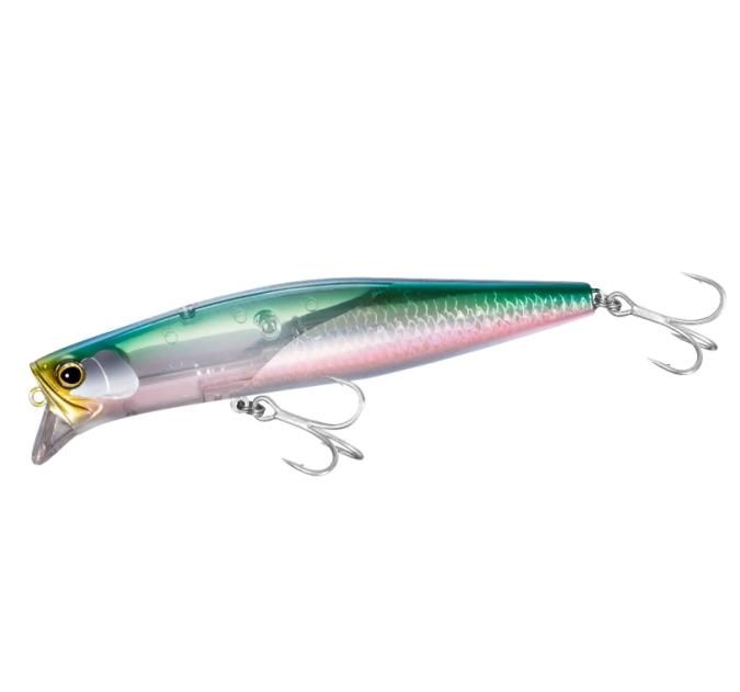 表層で引波を発生させてシーバスにアピールするカウンターウェイク。シーバスのバイトゾーンになりやすい水面直下でスローに誘うことが得意なルアーで、 弱ったベイトを演出することでシーバスの捕食スイッチを入れます。 従来では、このタイプのルアーはその形状から空気抵抗を受けやすく、飛距離が出しづらいというのが弱点でした。そこでシマノでは、独自機構のジェットブーストを搭載することで安定した飛距離を実現。ルアーの形状も細かく検証を繰り返すことで、アクションを犠牲にすることなく、空気抵抗を受けにくくよく飛ぶデザインを導き出しました。
