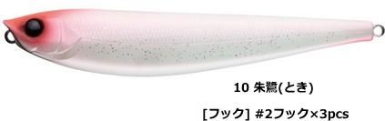 新発売の160mmサイズは、オリジナルの105mmと同様にマグネット重心移動を搭載し、さらなる飛距離アップに成功。コノシロパターンや落ち鮎パターン、秋のイナッコパターンにも対応する。また、水平に近い浮き姿勢と絶妙な浮力設定によりフッキング率のさらなる向上も実現している。