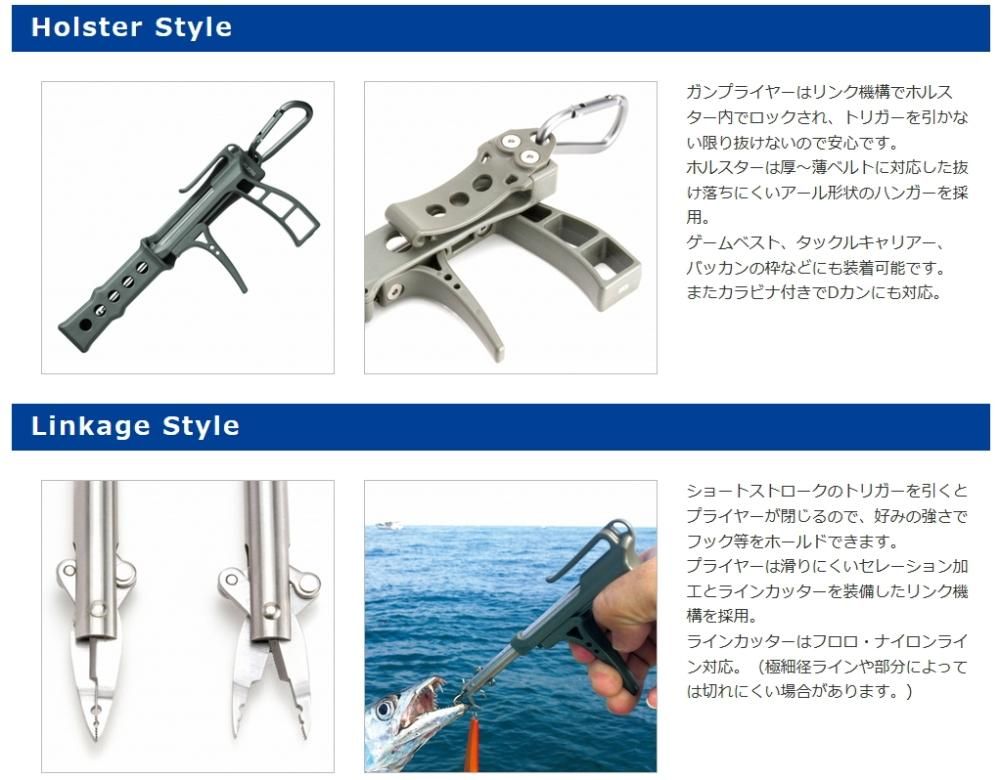SWライトゲームでのフック外しやラインカッターに、リンク機構を採用したガングリップ型プライヤー。