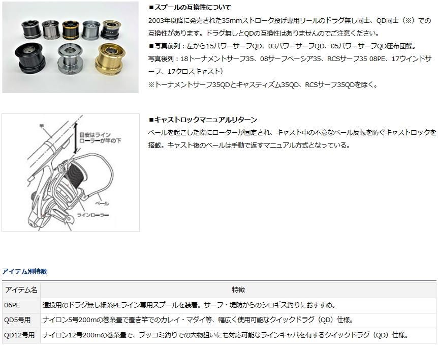 ドラグ無し同士、QD同士でのスプール互換性あり。