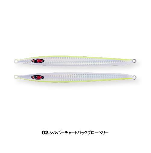 ・その形状は、7面で形成したセンターバランス表裏左右非対称ボディでアピール力抜群のセミロングジグ。