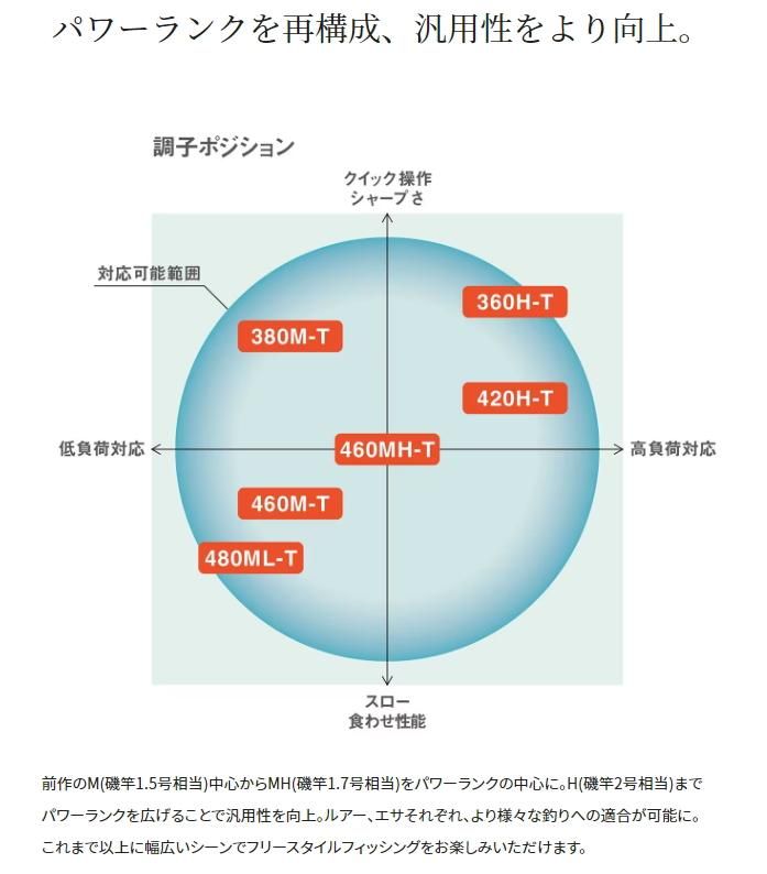 様々な実釣シーンを想定し、レングスごとに調子・設計を再構築しました。