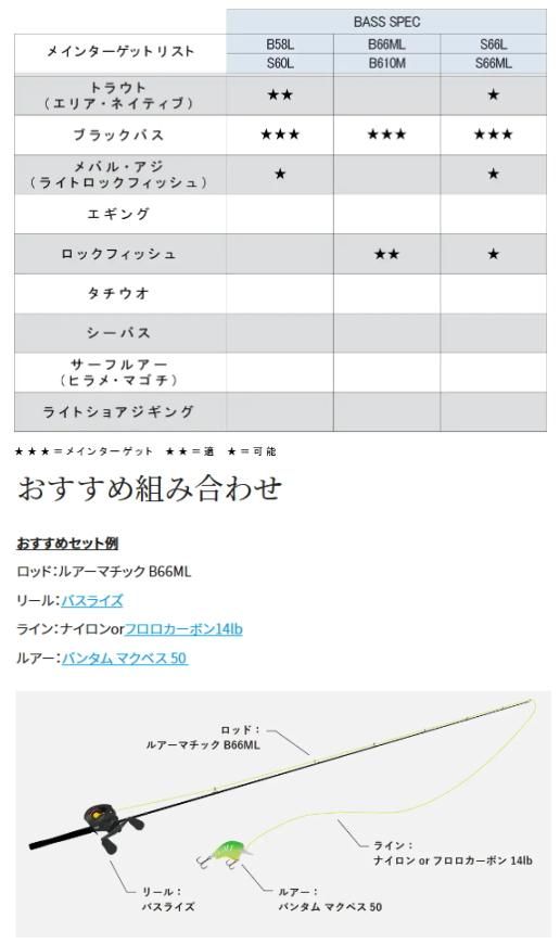 商品情報 シマノ SHIMANO ルアーマチック (バス推奨モデル) LUREMATIC (BASS) / バス ロッド