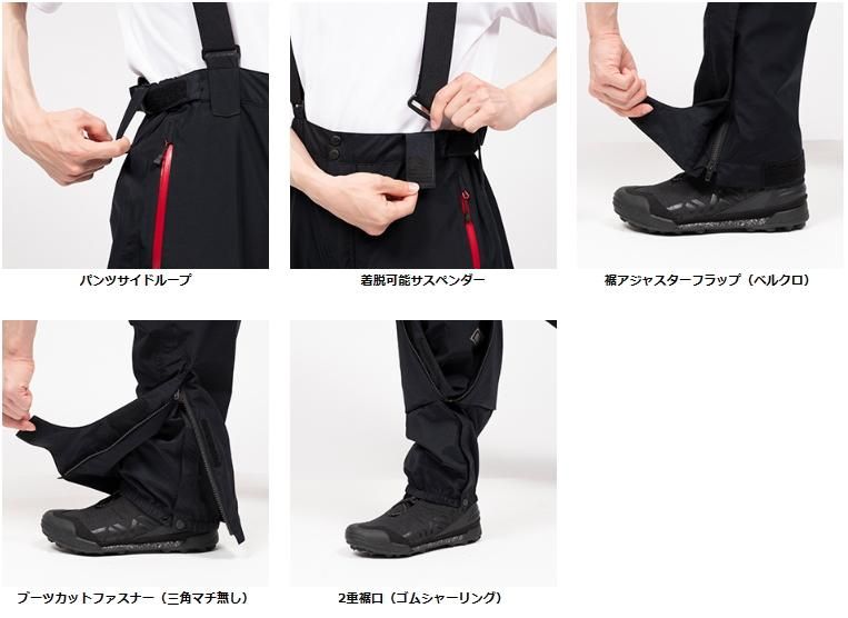 優れた耐久防水性、防風性、透湿性を有する2層構造のゴアテックスファブリクスを採用。内側のメッシュがベタツキを緩和。磯シューズとの隙間漏れを軽減する新設計裾口。
