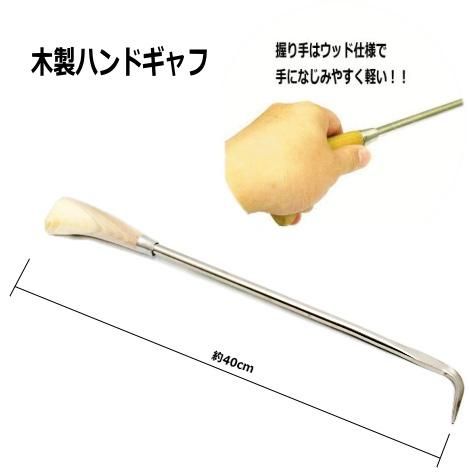 グリップ部分が木製で、手に馴染みやすく、握りやすい形状となったハンドギャフ。