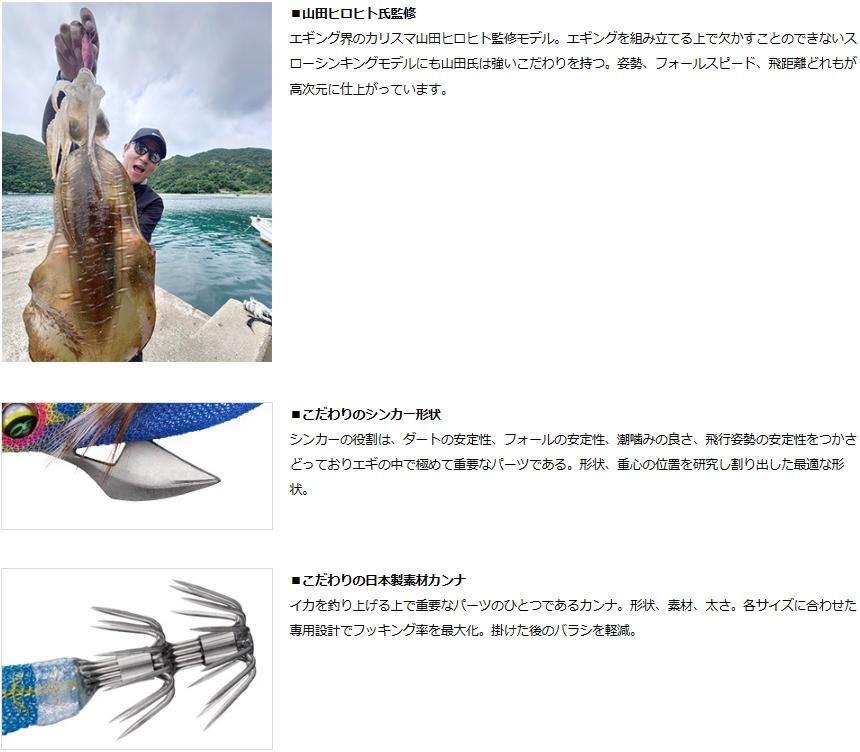 山田ヒロヒトが考える使いやすいスローシンキング、釣れるスローシンキングを形にした。フォールスピードはシャローや藻場を攻略しやすい6秒/mに設定。