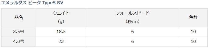 商品情報 ダイワ DAIWA グローブライド エメラルダス ピーク TypeS RV EMERALDAS PEAK TYPE S RV / 餌木 エギング