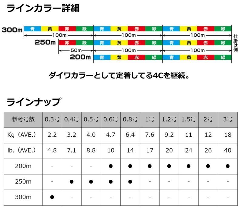カラー 25m×4色(リールスプール上面より緑・赤・黄・青)
