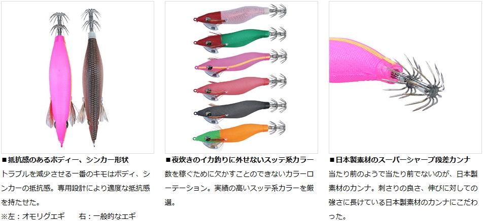 エギ自体に抵抗を持たせ、キャストやフォール時にトラブルが少ないオモリグ専用設計