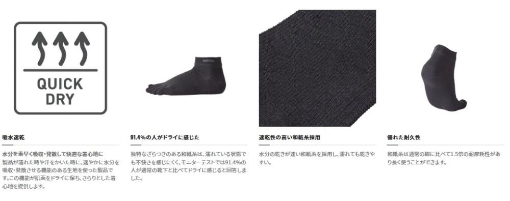 濡れてもドライな履き心地、速乾の和紙糸ソックス
