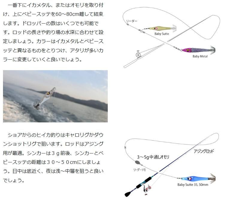 対象魚:ケンサキイカ(マルイカ、ブドウイカ、シロイカ、ササイカ)、スルメイカ(ムギイカ)、アカイカ(ムラサキイカ)、ヤリイカ、ヒイカ(ジンドウイカ)、コウイカ、シリヤケイカ