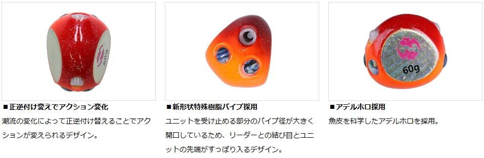 長きにわたり、タイラバを研究してきた結果たどり着いたタイラバヘッドの完成形。βシステムとの相乗効果でフッキング性能大幅UP。潮の速さに合わせて逆付け、正付けでアクションが変えられるダブルアクション設計。