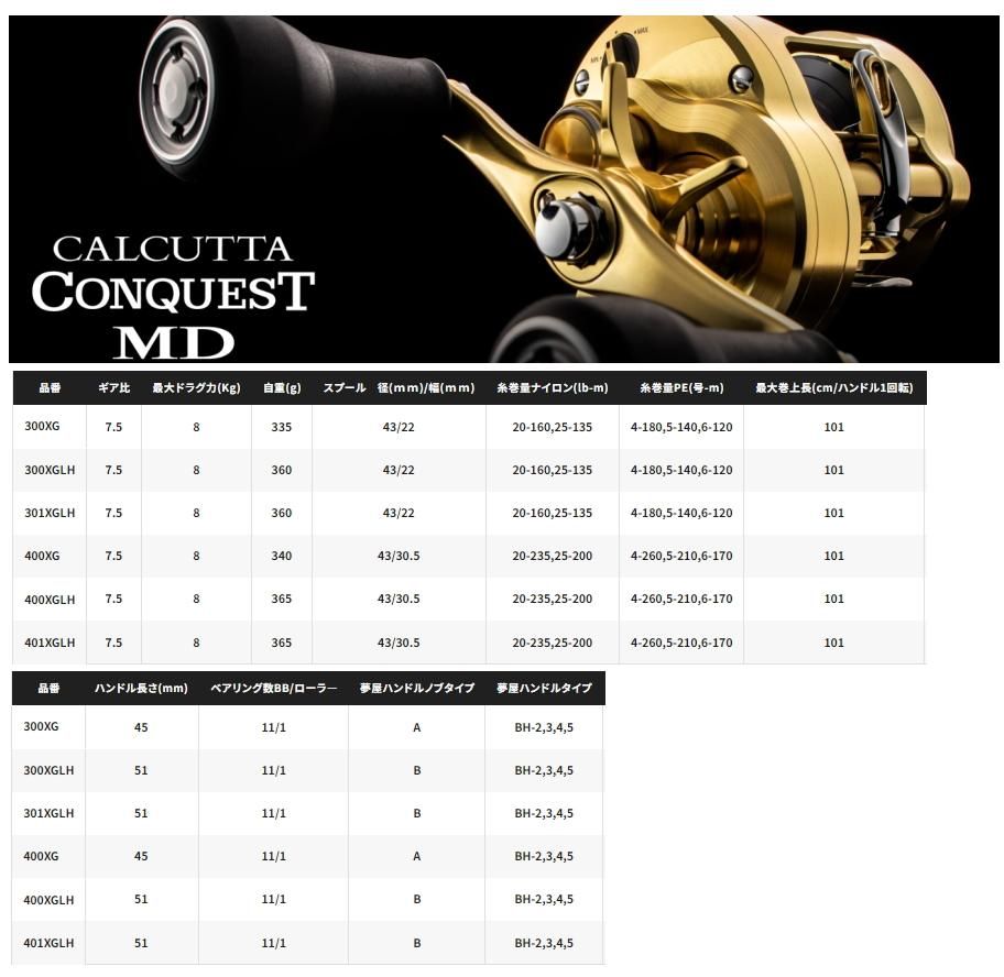 シマノ 23 カルカッタコンクエスト MD 301XGLH(左ハンドル) / ベイトリール (送料無料) / shimano 【本店特別価格】