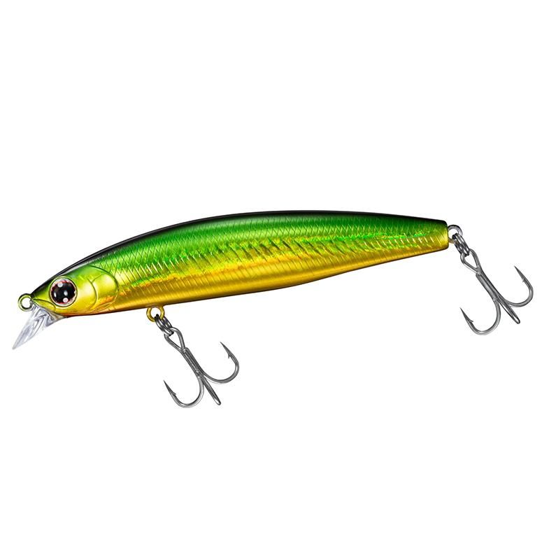 強い水押しを生む「広角ワイドリップ」採用により、キレキレのワイドウォブンロールアクションを発生。ただ巻きひとつで激濁りやサラシの中でもワンサイズ上のミノーに匹敵するアピール力で魚を誘き寄せる。重心保持システム(HGS)をあえてルーズに設定することで、ワイドアクションや流れの変化でウエイトの「保持⇔フリー」を繰り返し、自動的にバランスを崩す「喰わせの間」をルアーが勝手に演出してくれる。幅広ながら計算されたリップデザインと「ぶっ飛びサイレントウエイトオシレートシステム」の相乗効果で驚きの飛距離を生み出し、広範囲を効率的に探るサーチベイトに最適。ボートゲームや港湾ゲームで欠かせない「セットアッパー」という名の先発エース。