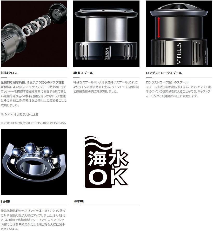 22STELLAのスプールをベースに軽量化を行うとともに、使い方に応じて選べる多彩なラインキャパシティを設定。全アイテムにバリアコートスプールリングを採用、さらに1000番サイズからC2500サイズのドラグにはハイレスポンスドラグを搭載するなど実釣で生きる機能も盛り込みました。上質でシンプルなデザインを採用することで、装着するリールやフィッシングシーンを選ばない仕上がりとなっています。