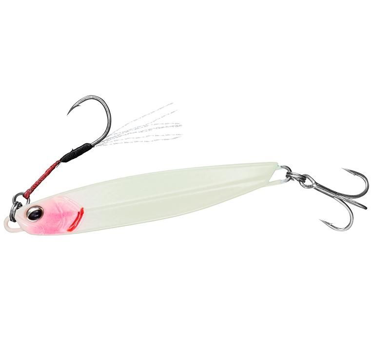 ショアジギングの人気沸騰により、ますます混戦の堤防。激戦区で釣り勝つためのメタルジグをとことん突き詰めたのがこのサムライジグRだ。重心バランスを見直すことで、旧タイプ(サムライジグ)よりもさらなる飛距離を獲得。向かい風や横風のなかでも安定した飛距離を獲得する。また、それにより水流抵抗も最適化され、ラインがフックに絡むテーリング(エビり)などのトラブルの軽減にも成功したうえ、ハイピッチやスローピッチなどの応答性がよくなり、アクションの幅も拡大している。また、フックも大きく見直しをかけている。フロントには滑りが良くなるフッ素コートでサクッと絡めとるように刺さるサクサスフックのティンセルアシストフックを採用。ショート化したことで、刺さりのレスポンスと絡みにくさを向上させている。