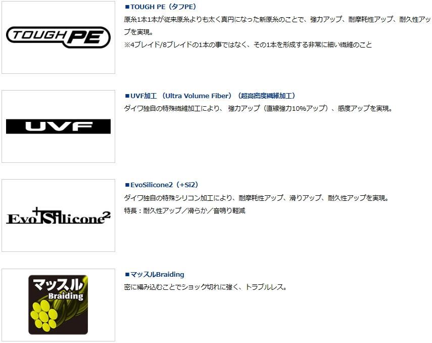 ・UVF加工(超高密度繊維加工)⇒強力、感度がアップ(ダイワ社比)
