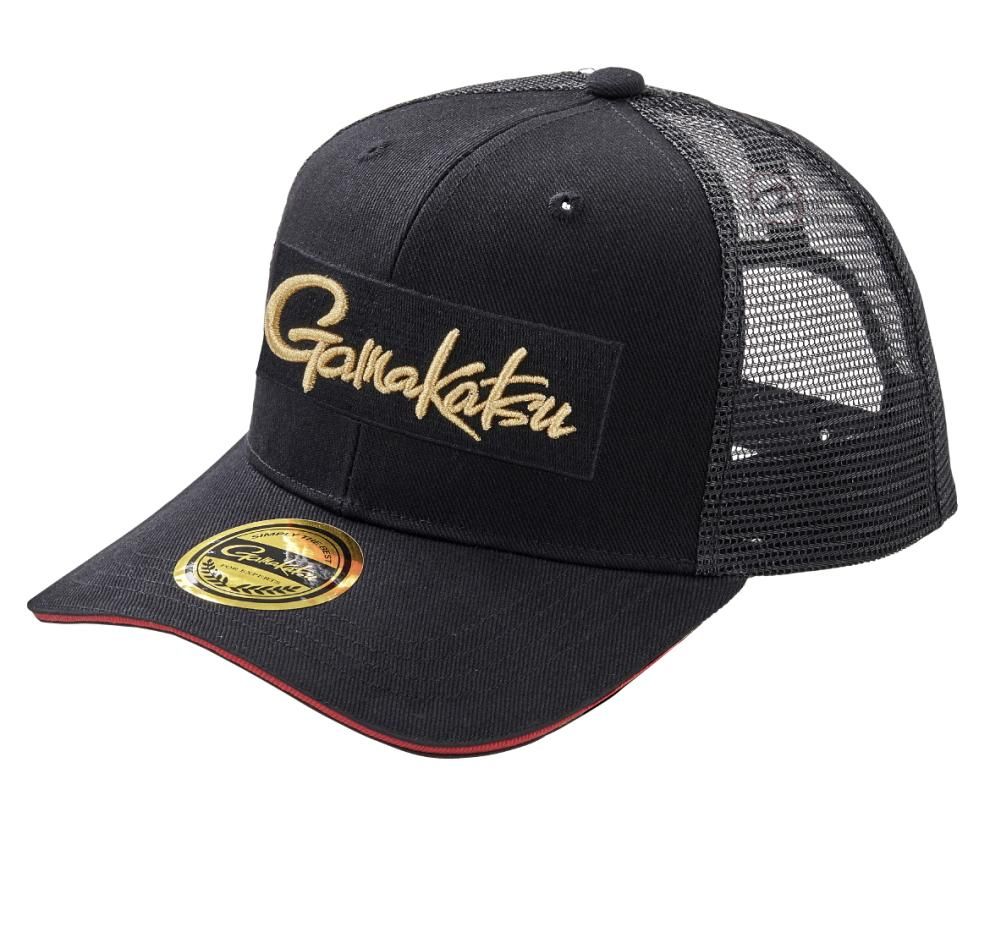 がまかつ ハーフメッシュキャップ (ボックスロゴ) GM-9104 ブラック×ゴールド Lサイズ 【本店特別価格】 【gamakatsu】