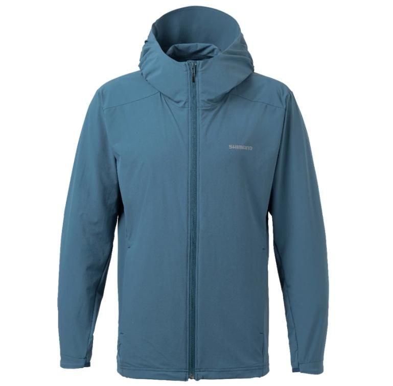 表面には撥水加工、肌面には凹凸のあるドライタッチ素材を使用した二重織構造。脇下にはベンチレーションを設け、左右ポケットはメッシュ素材がついた蒸れにくい仕様となっており着心地は快適。フードと裾のドローコードが、風でバタつかないよう調節可能に。朝晩の冷え込む時間帯にさっと羽織ることができ動きやすいので、キャスティングも問題なくできて幅広いシチュエーションで使える1枚です。
