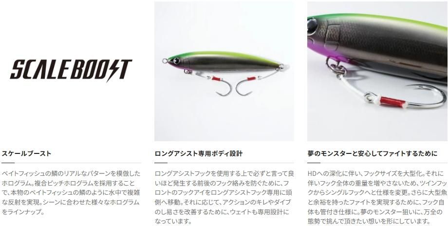 20kgオーバーが着実にキャッチされ、30kgクラスをキャッチする事も夢では無くなってきた玄界灘のヒラマサキャスティングゲーム。モンスタードライブは、激戦区のハイプレッシャーな環境で、さらにショートバイト化する状況でも口の中に吸い込まれやすい軽量なシングルフックを、自由度の高いロングアシストでセッティング。
