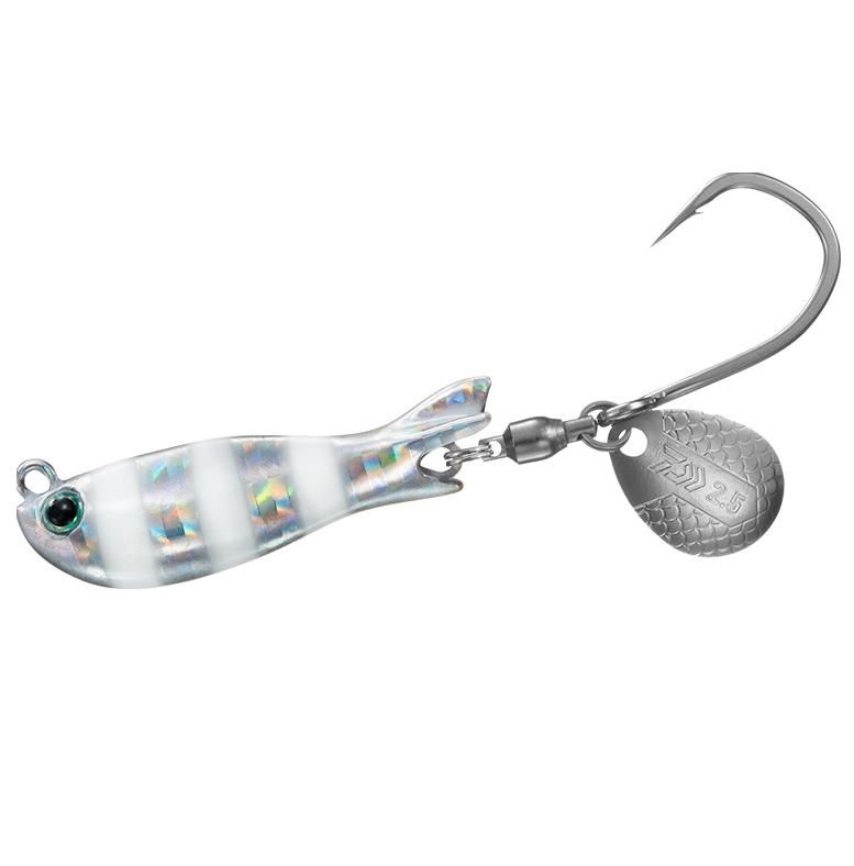 素材は、高比重タングステンボディ。マッチザベイトに加え、飛距離と動きの速い群れにいち早く到達させるためこの素材を採用。ブレードはコロラドタイプで大きな波動でアピールするとともに、カタクチなどメインベイトの泳ぎにアジャストさせることを意識したブレードタイプとして採用。